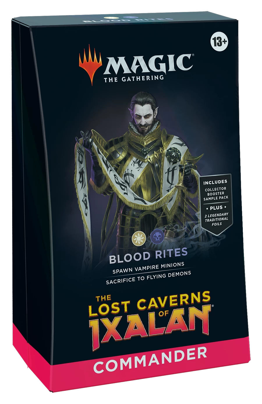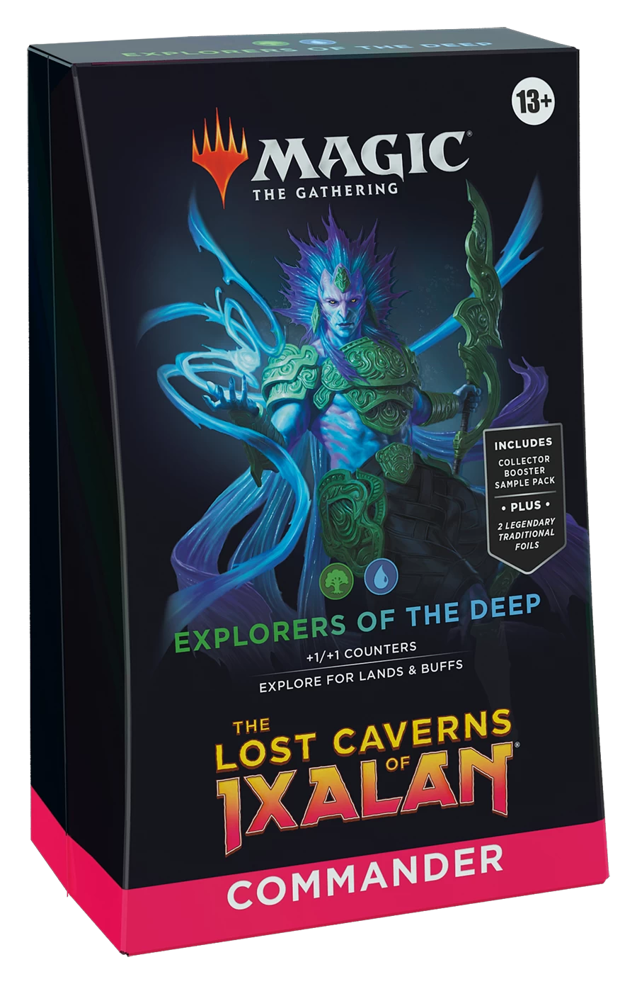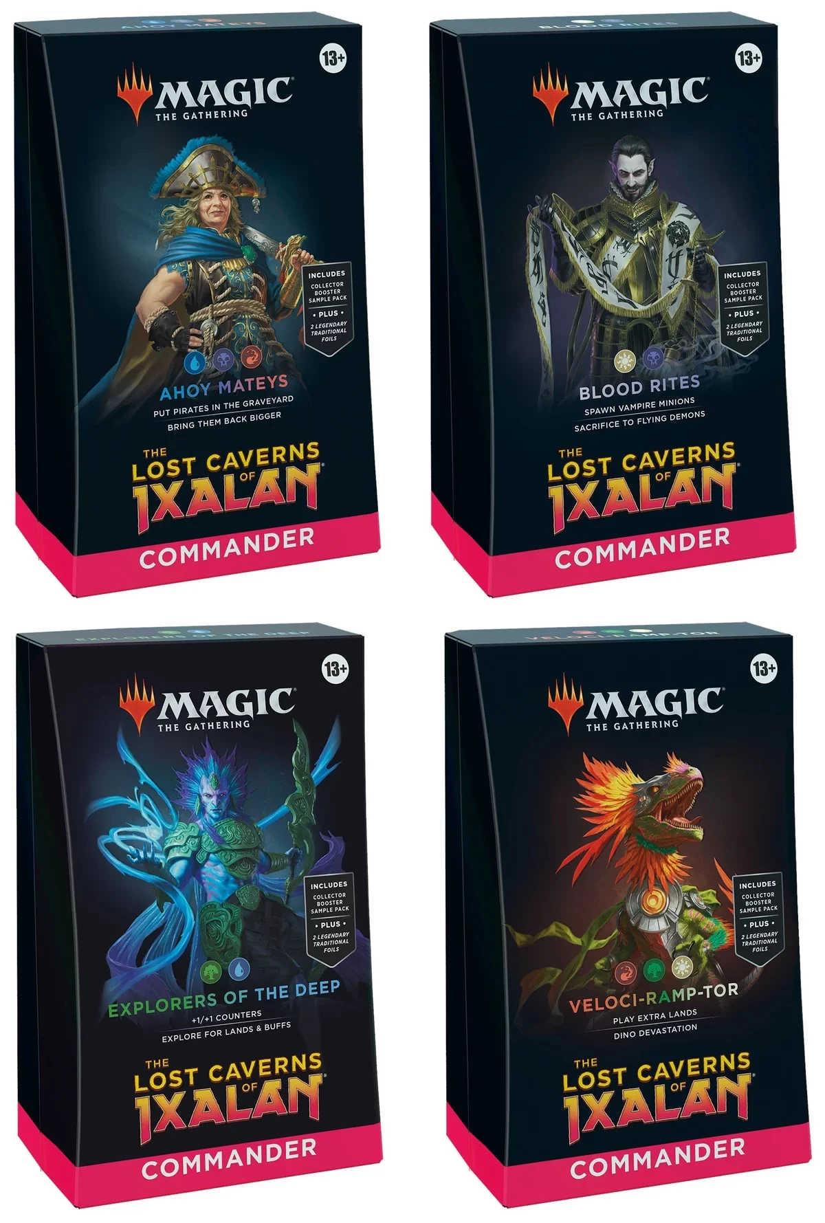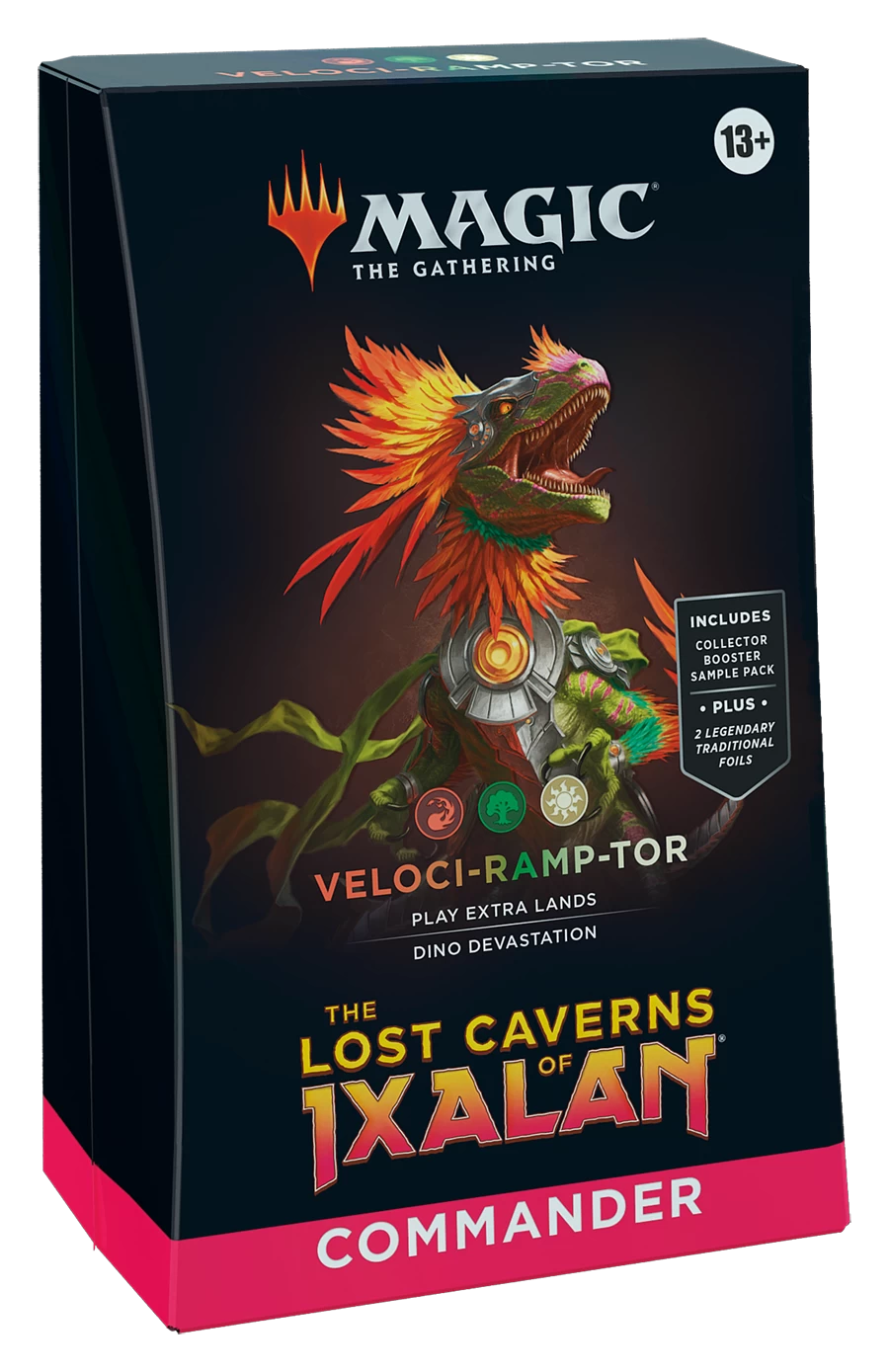 • 100-card ready-to-play The Lost Caverns of Ixalan Commander Deck; 2 Traditional Foil + 98 nonfoil cards